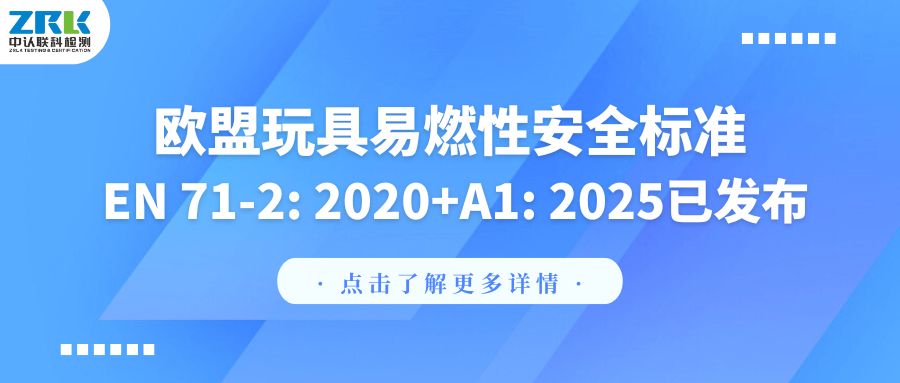 2025年6月11日,歐洲標(biāo)準(zhǔn)化委員會(huì)(CEN)發(fā)布了玩具安全標(biāo)準(zhǔn)EN 71-2的修訂版 EN 71-2: 2020+A1: 2025 《玩具安全-第2部分:易燃性》。